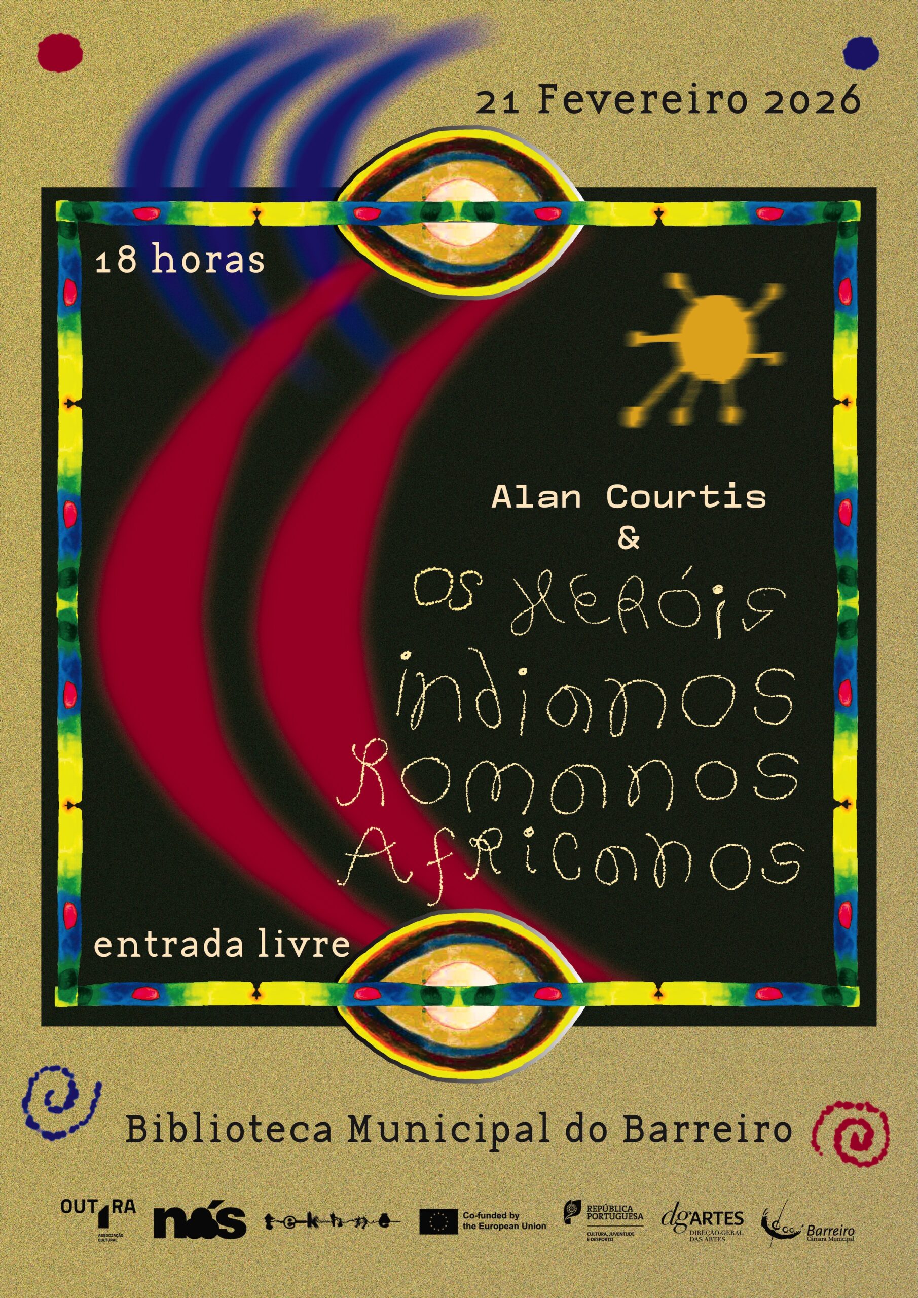First welcomed to Barreiro in 2016, Argentine musician Alan Courtis quickly became a central figure in a unique, barrier-free journey of musical experimentation with Associação NÓS. Together with a diverse group of participants, which includes artist-facilitators Bá Alvares, André Neves and Leonardo Bindilatti, this ongoing project has revealed — year after year — the boundless possibilities of collective sonic creation, wonder, and liberation. Os Heróis Indianos Romanos Africanos reunite once again for a special concert marking 10 years of this shared path, presenting an ever-growing, never-to-be-repeated repertoire. Back in the auditorium of the Barreiro Municipal Library this February — a space full of memory, and of new promises. Let’s celebrate.